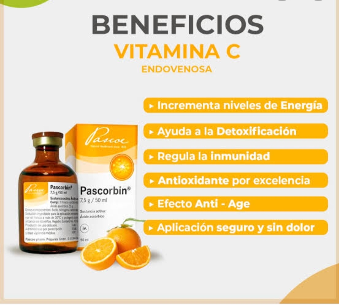 La terapia de sueros de Vitamina C intravenosa de alta dosis de un poderoso antiinflamatorio y se usa para personas que tienen enfermedades autoinmunes crónicas, unfecciones y cáncer. En niveles bajos es un poderoso antioxidante, sin embargo en altas dosis se convierte en un oxidante que se descompone en el cuerpo para producir peróxido de hidrógeno y se usa para combatir el cáncer y células patógenas.